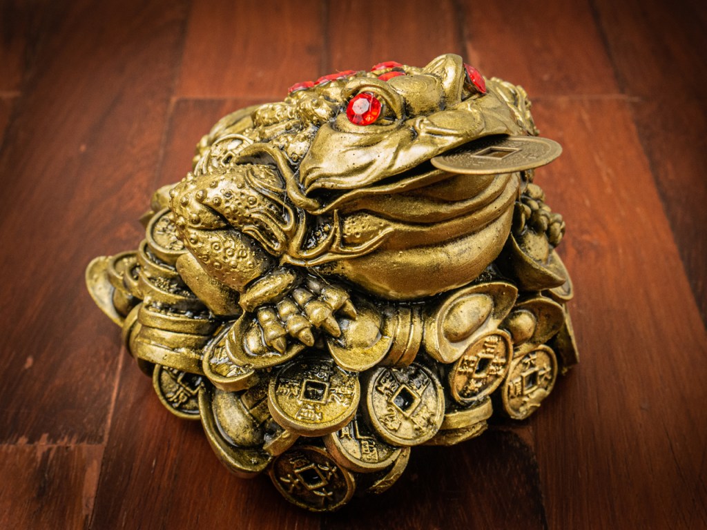 វាគឺជាប្រភេទសត្វដែលទាក់ទងនឹងលុយ ដែលអាចស្រូប ស្ដោះទឹកមាត់ និងប្រមូលទ្រព្យសម្បត្តិ ដូច្នេះហើយបានជាម៉ាស្កូតដ៏ល្អបំផុតសម្រាប់គ្រួសារ និងអាជីវកម្ម។ រឿងព្រេងនិទានថាវាអាចស្ដោះទឹកមាត់រកលុយដោយរសជាតិ។ ក្រោយមក មាននរណាម្នាក់និយាយថា វាអាចប្រមូលទ្រព្យសម្បត្តិបាន ដូច្នេះហើយ គេតែងតែដាក់នៅមាត់ទ្វារ ដើម្បីប្រមូលលុយ។ ប្រសិនបើកន្ទុយរបស់ គីង្គក់មាស ចុចលុយនោះវាមានន័យថាទ្រព្យសម្បត្តិនឹងកើនឡើងទ្វេដង។ ដូច្នេះហើយ ការដាក់ គីង្គក់មាសនៅក្នុងផ្ទះរបស់អ្នក ក៏ជាជម្រើសដ៏ល្អ ប្រសិនបើអ្នកចង់លើកកំពស់ហុងស៊ុយទ្រព្យសម្បត្តិ ។